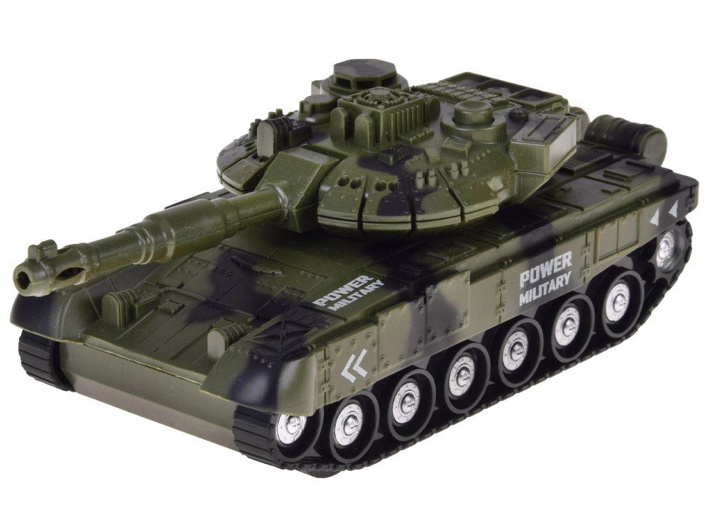Realistický tank v maskáči s detailnými pásmi a otočnou vežou posilní zážitok z taktických bitiek a obranných misií.