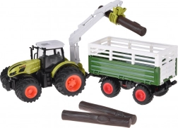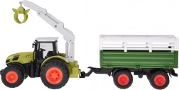 Tento detailne spracovaný RC traktor v ikonickej zelenej farbe poteší veľkými pneumatikami s hlbokým dezénom pre lepšiu priľnavosť a robustným prívesom na prevoz nákladu. Manuálne ovládané rameno sa otáča o 360°, možno ho zdvíhať a spúšťať a drapák sa ručne otvára a zatvára – ideálne na nakladanie priložených klád.