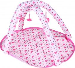 Mäkká okrúhla podložka so zavesenými hračkami podporuje rozvoj zmyslov a ponúka útulné miesto na hranie a oddych bábätka.