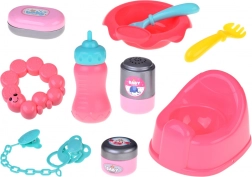 - bábätko • miska • lyžička • vidlička • fľaša • nočník • cumlík s retiazkou • hrkálka • 3 dózy „starostlivosti“ • kočík • ležadlo • hracia podložka s hrazdou • cestovná postieľka s puzdrom • taška.