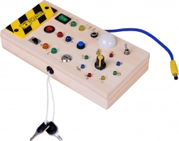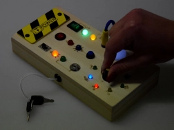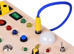 Farebné LED diódy v niekoľkých odtieňoch rozsvietia dosku po správnom stlačení tlačidiel či prepínačov a učia deti princípom príčiny a následku aj rozpoznávaniu farieb.