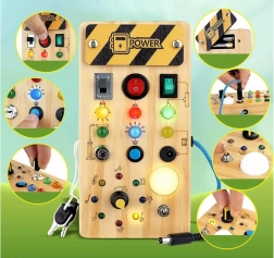 Objavte šikovnú hračku, ktorá spája učenie a zábavu: drevená montessori manipulačná doska s farebnými LED diódami, prepínačmi, tlačidlami a kľúčikom. Deti si precvičia jemnú motoriku, logické myslenie a vnímanie príčiny a následku – všetko v bezpečnej, tichej a maximálne pútavej forme.