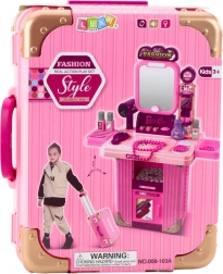 Ružová kufríková toaletka 2v1 so svetlom a zvukmi – detský make-up set