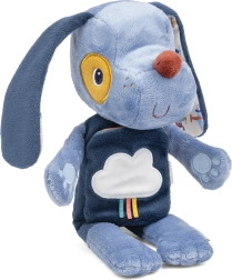 Plyšový psík Jules je ideálna hračka na rozvoj jemnej motoriky, zmyslového vnímania aj fantázie. Mäkučké telíčko s hebkým povrchom láka k maznaniu, zatiaľ čo látková knižka na brušku predstavuje malý príbeh, ktorý dieťa zabaví doma aj na cestách. Svietiace prvky na obláčiku a labkách jemne žiaria v tme a pomáhajú navodiť pocit bezpečia pri zaspávaní.