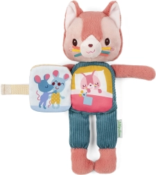 Plyšová mačička Jeanne prináša deťom nehu aj objavovanie. Na jej brušku je pripevnená látková knižka s farebnými ilustráciami, ktorá podporuje jemnú motoriku, zvedavosť a prvé rozprávanie príbehov. Večer sa postará o pokojný spánok – domček a ušká jemne svietia v tme a vytvárajú upokojujúcu atmosféru.