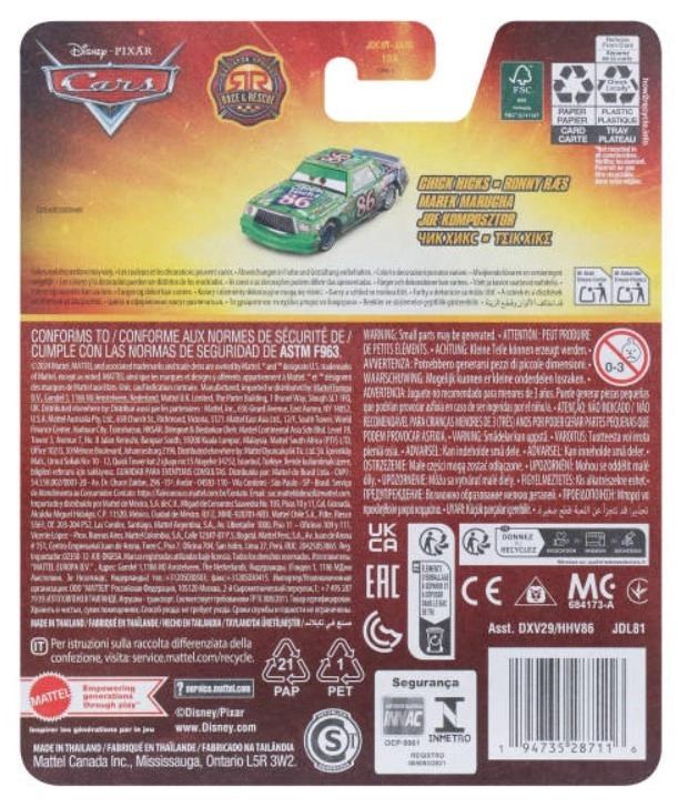 Rozšírte svoju zbierku o ikonického pretekára z filmu Autá 3. Kovové autíčko Chick Hicks v mierke 1:55 zaujme detailnou potlačou sponzorov, číslom 86 a voľne sa otáčajúcimi kolesami s potlačou Lightyear. Ideálne na hranie aj vystavenie a skvelé pre fanúšikov Disney•Pixar.