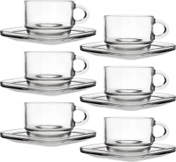 Sada je vyrobená z odolného skla pre dlhú životnosť a pohodlné každodenné používanie. Ergonomické ucho zaistí istý úchop, podšálky zachytia kvapky a pojmú aj lyžičku či sušienku. Vďaka možnosti umývania v umývačke je údržba maximálne jednoduchá.