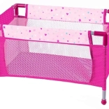 Ružová postieľka s kovovým rámom je ideálna na hranie doma i vonku. Je prenosná a ľahká.