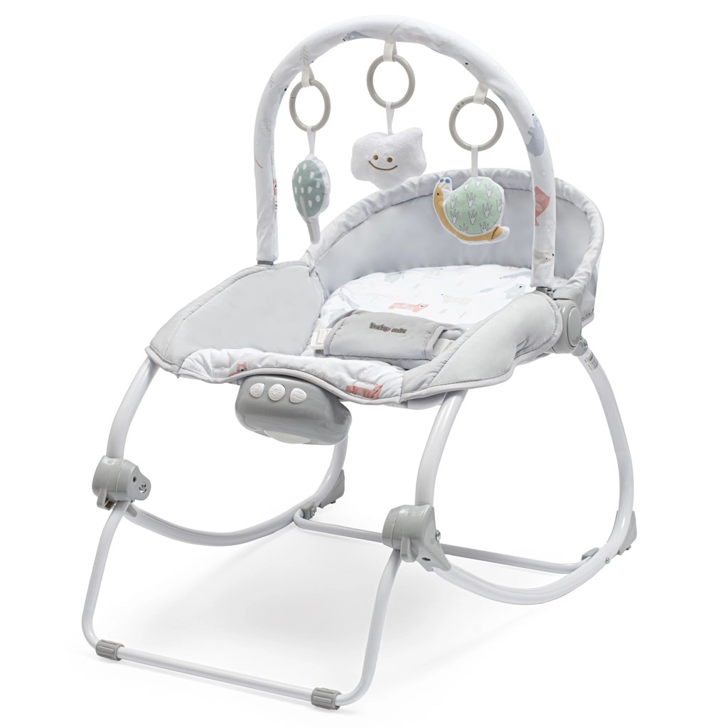 Univerzálny pomocník do každej domácnosti: ležadlo BABY MIX Slimák využijete od prvých dní života bábätka až po batoľací vek. Ponúka jemné hojdanie s možnosťou aretácie do pevnej polohy, takže sa hodí na upokojenie a spánok aj na kŕmenie či hranie. Integrovaný panel so zvukmi, svetlom a vibráciami pomáha vytvoriť príjemné a upokojujúce prostredie.