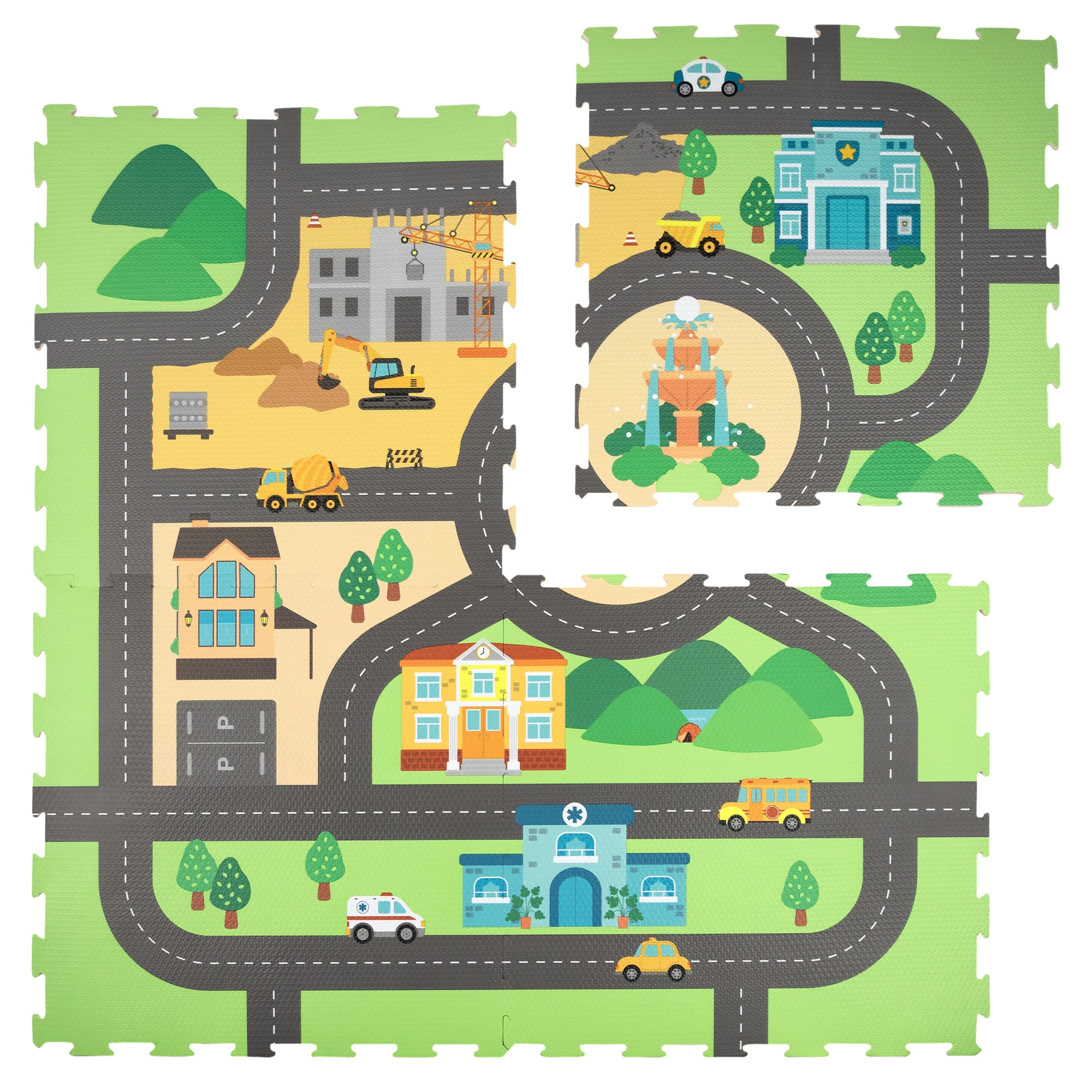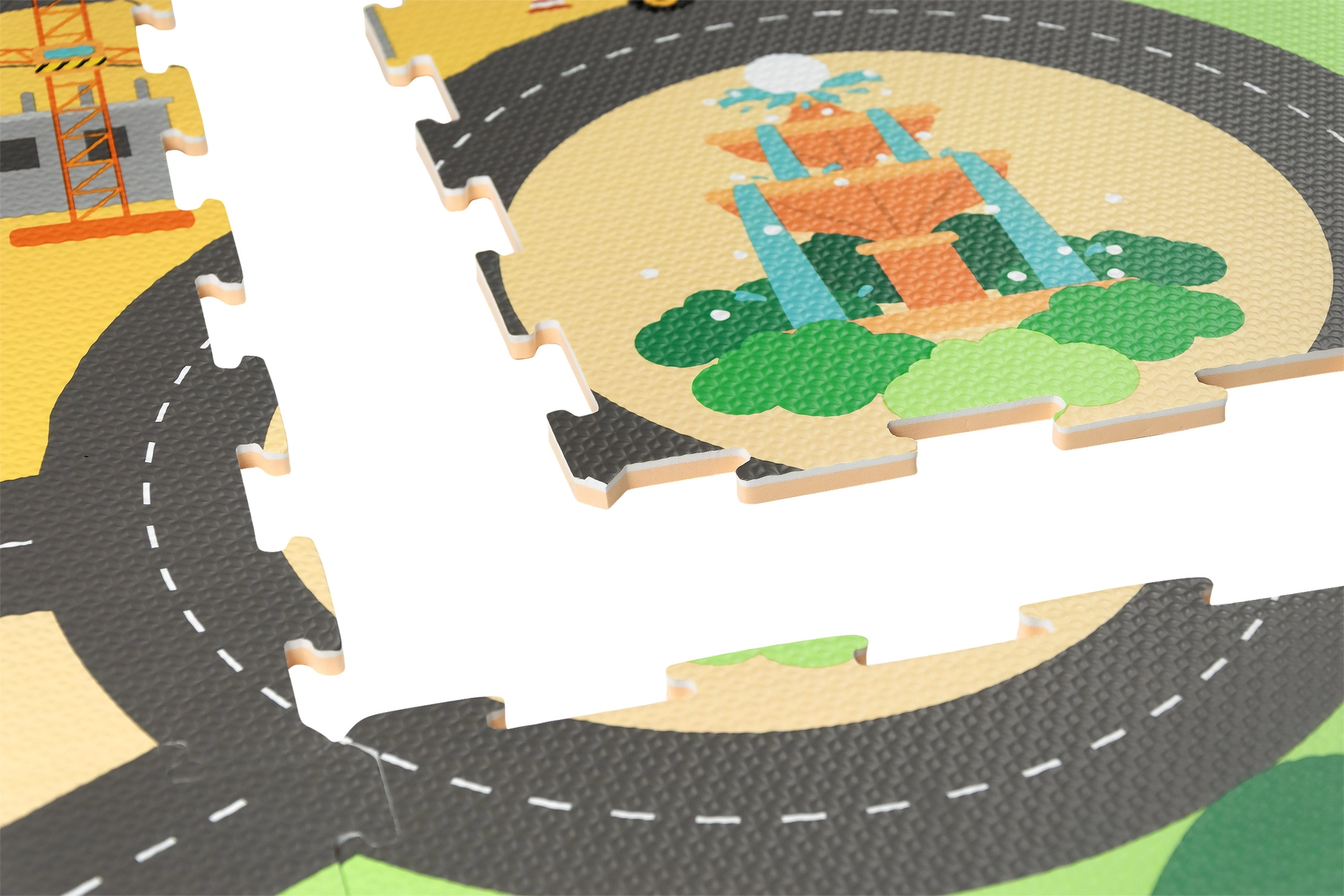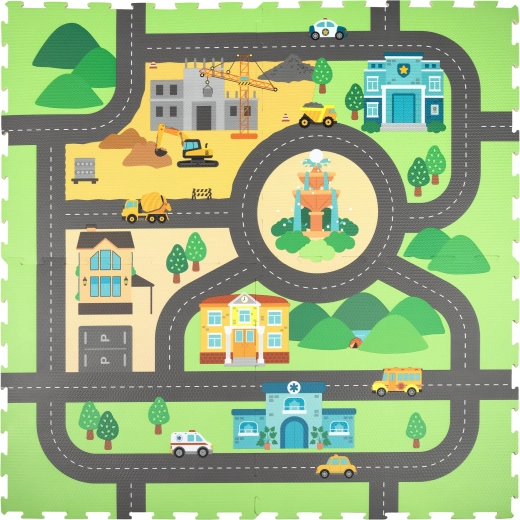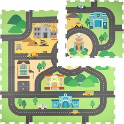 Vzdelávacie penové puzzle HUMBI spájajú učenie a hru v jednom. Vďaka potlačeným cestám a budovám deti ľahko vytvoria vlastné mesto, plánujú trasy a rozvíjajú predstavivosť. Povrch je mäkký, tlmí nárazy a chráni pred chladom z podlahy.