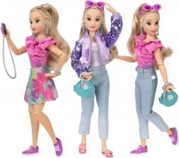 V balení nájdete hneď dva kompletné outfity a množstvo doplnkov pre nekonečné kombinácie. Od trblietavej fialovej bundičky so sequin rukávmi cez kvetovanú sukňu až po štýlové okuliare a kabelku – všetko zladené do morského štýlu.