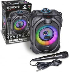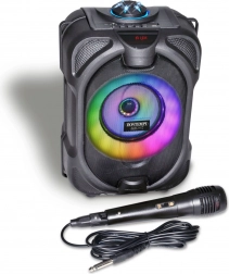 Tento multifunkčný bezdrôtový reproduktor premení každú oslavu na zážitok. Vďaka dynamickému mikrofónu je ideálny na karaoke, moderovanie aj hovorené slovo. Farebné LED efekty podčiarknu atmosféru, zatiaľ čo integrovaný displej prehľadne zobrazí režim a informácie o prehrávaní.