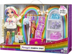 Objav svet módy s herným setom Rainbow High – šatník s bábikou, ktorý prináša nekonečné stylingové možnosti. Vo vnútri nájdeš bábiku s dúhovými vlasmi, štýlové oblečky na vešiakoch, kabelky a topánky na vytváranie viac než 75 outfitov. Vďaka praktickému šatníku a stojanu s vešiakmi môžeš mixovať a ladiť jednotlivé kúsky, vystavovať ich a zábavne sa hrať na módnu prehliadku. Set podporuje kreativitu, fantáziu a zberateľské nadšenie všetkých milovníkov RAINBOW HIGH.