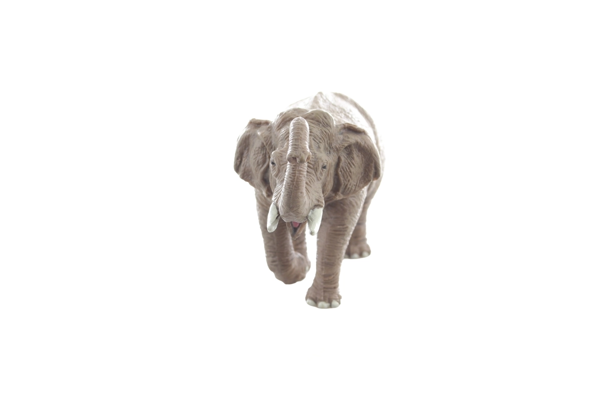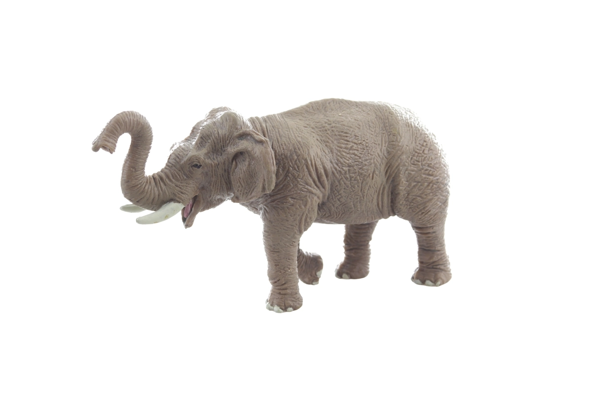 Detailná textúra kože, zdvihnutý chobot a výrazné kly podporujú predstavivosť a edukatívne hry.