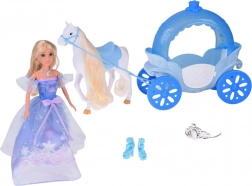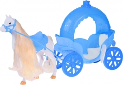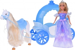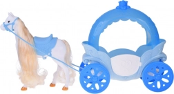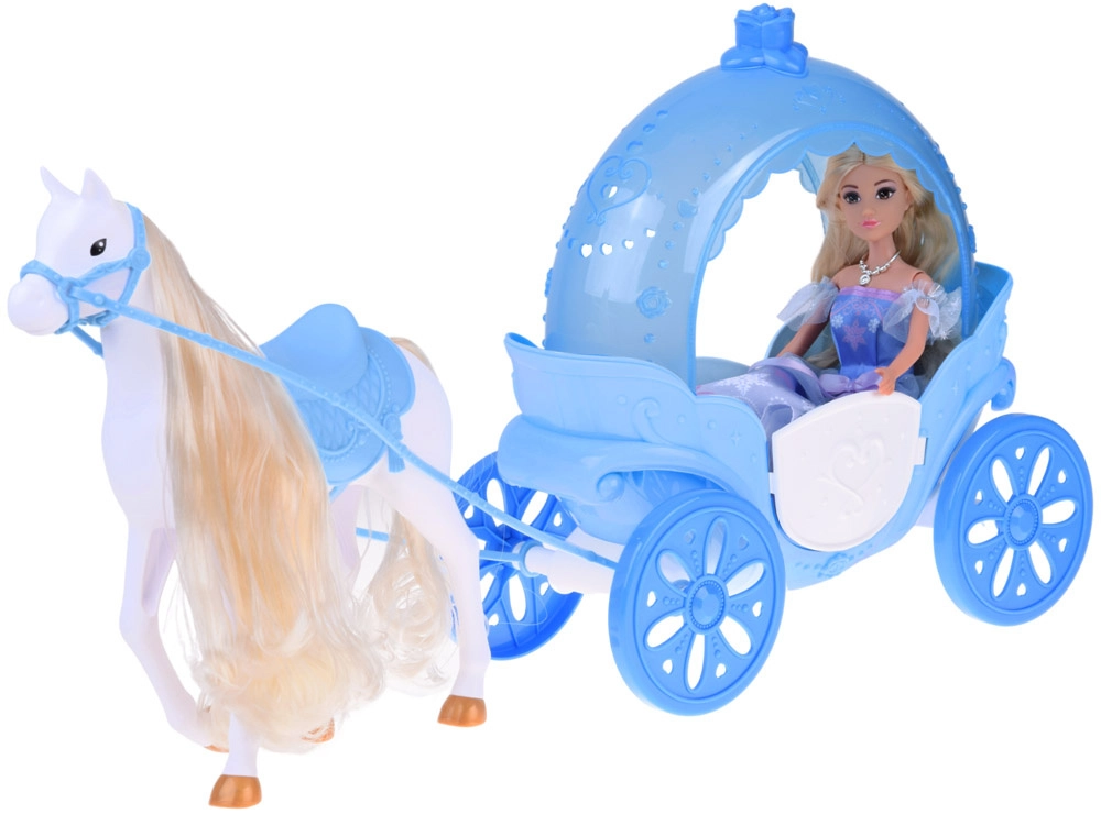 - Bábika princezná, tiara, náhrdelník, topánky; biely kôň so sedlom a uzdou; kočiar