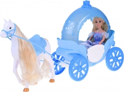 Objavte kúzlo rozprávkového sveta s týmto očarujúcim setom: bábika princezná v dlhých šatách, majestátny biely kôň a rozprávkový kočiar. Ideálne na kreatívne hranie, rozprávanie príbehov a rozvoj fantázie. Kočiar má pojazdné kolesá, kôň je vybavený sedlom a uzdou a bábika má pohyblivé končatiny a doplnky ako tiara a náhrdelník.