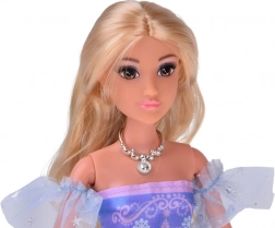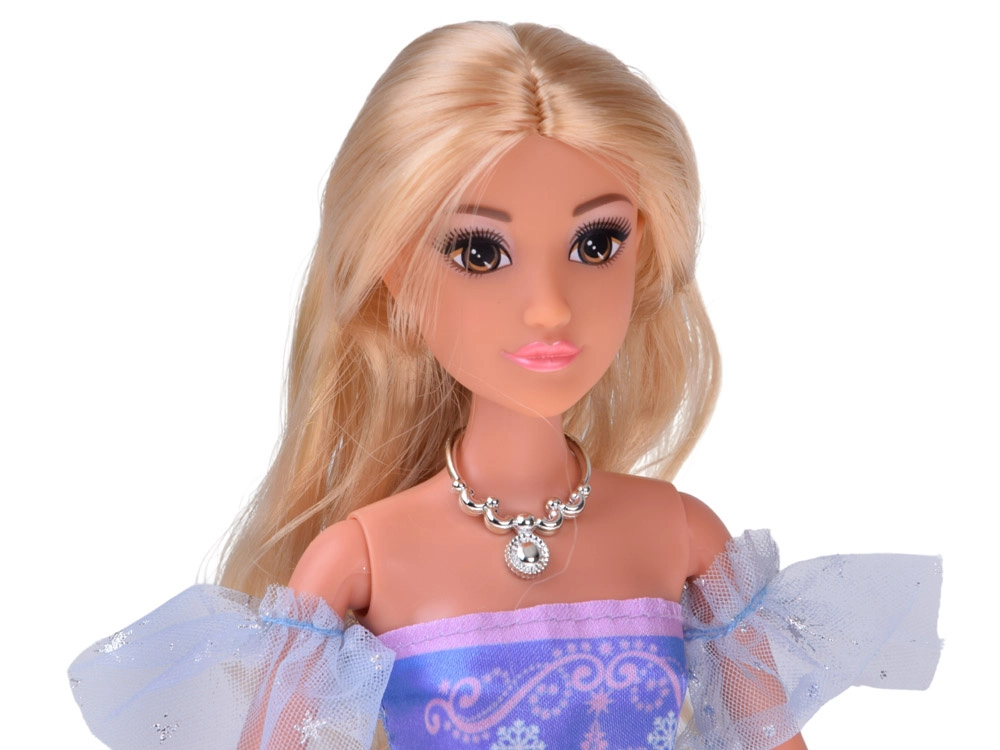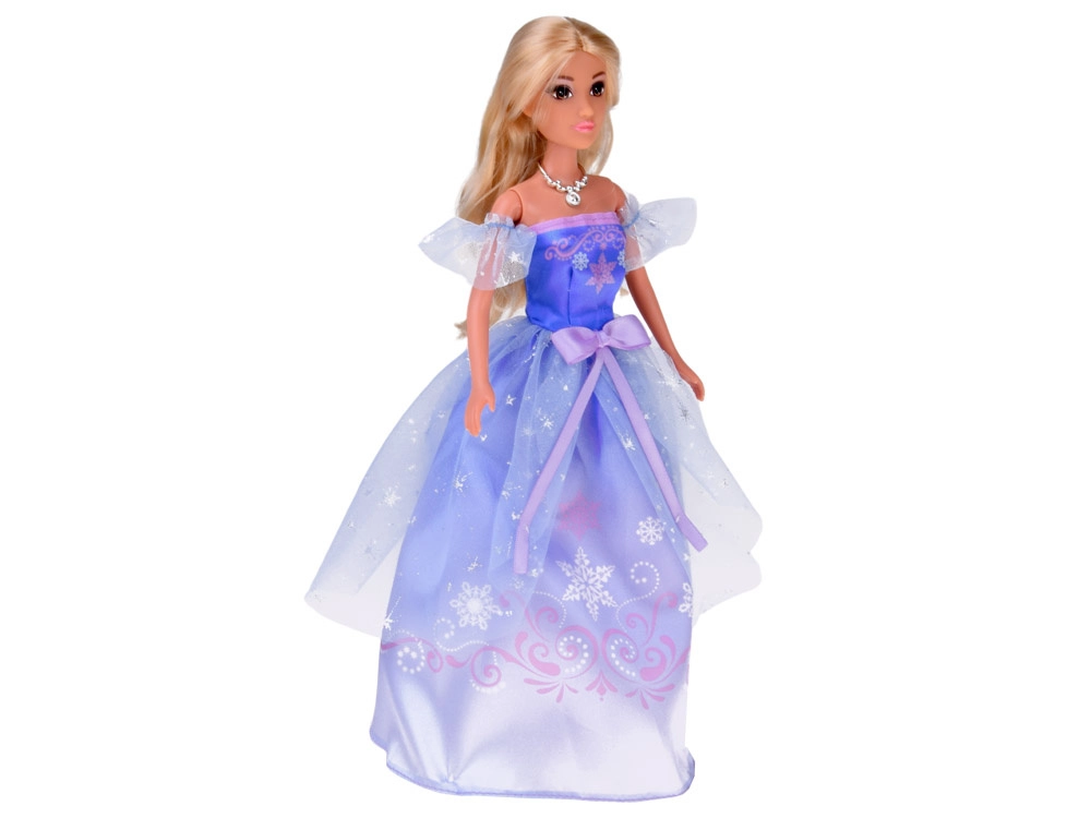 Princezná má dlhé blonďavé vlasy na česanie, detailné šaty s tylom a mašľou a doplnky – tiaru a náhrdelník. Pohyblivé končatiny uľahčia pózovanie aj hranie.