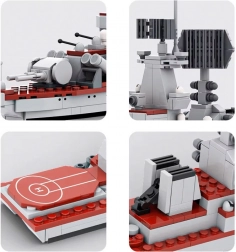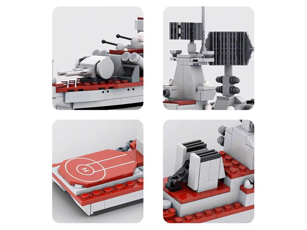 Tento stavebný set prináša hodiny zábavy pri skladaní aj pôsobivý výsledok na poličke. Vďaka pevne držiacim dielikom vytvoríte stabilnú konštrukciu s bohatou výbavou – od radarov cez delové veže až po palubné nadstavby. Realistické prevedenie podporia samolepky v balení, ktoré dodajú finálnemu modelu autentický vzhľad.