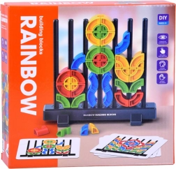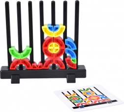 Súčasťou sú karty so vzormi, podľa ktorých deti skladajú farebné dieliky na tyčky – alebo môžu tvoriť vlastné nápady a rozvíjať kreativitu.