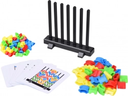 - základňa s tyčkami, 36 veľkých dielikov (4 farby), 36 malých dielikov (4 farby), 30 kariet so vzormi