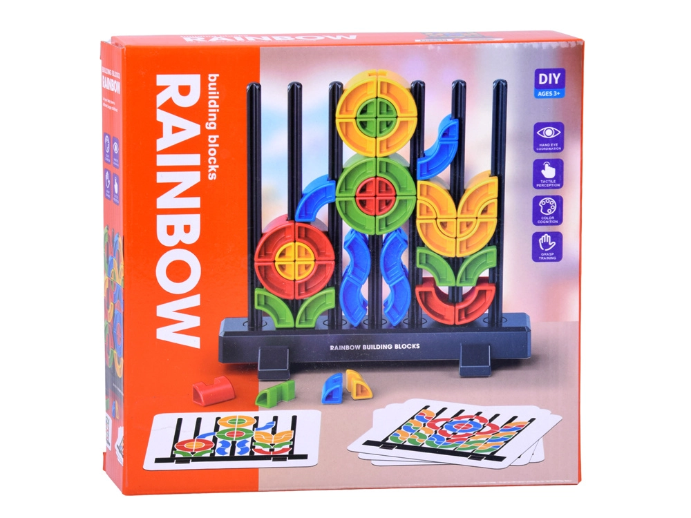 Táto kreatívna vzdelávacia vkladačka rozvíja detskú predstavivosť aj zručnosti: navliekaním a vrstvením farebných prvkov na tyčky deti trénujú presnosť prstov, koncentráciu a vizuálne vnímanie. Vďaka kartám s predlohami môžu začiatočníci ľahko začať a postupne si pridávať na náročnosti.