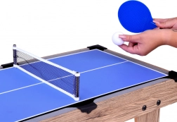 Stačí pár sekúnd a vymeníte hernú plochu: od presného mierenia pri biliarde, cez dynamické výmeny pri ping‑pongu, svištiaci puk pri air hockey až po napínavé góly v stolnom futbale. V balení je všetko potrebné – od gúľ, tág a trojuholníka cez pálky a loptičky až po počítadlá skóre a puky.