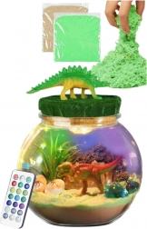 Magické terárium s motívom dinosaurov umožní deťom navrhnúť vlastnú scénu s pieskom, rastlinami, kamienkami a figúrkami. Vďaka LED osvetleniu s 13 farbami a 3 režimami si môžu prispôsobiť atmosféru podľa nálady a vytvoriť pôsobivú dekoráciu, ktorá v noci jemne svieti.