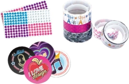 Farebné samolepky, trblietavé kamienky a dekoratívne pásky umožnia deťom ozdobiť slúchadlá presne podľa ich fantázie.