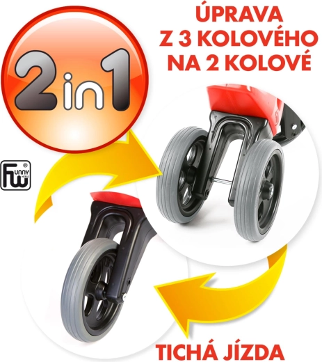 Počas pár minút zmeníte stabilnú trojkolku na dvojkolesové balančné odrážadlo. Ideálne pre prechod k prvému bicyklu.