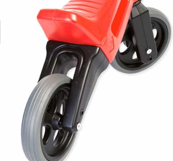 Odrážadlo má tiché pneumatiky, ktoré nešmýkajú, hladké a bezpečné spracovanie z odolného, nezávadného plastu a obmedzený rozsah otáčania vidlice, takže sa riadidlá nepretočia. Deti si prirodzene trénujú rovnováhu, koordináciu a motoriku a užijú si veľa zábavy doma aj vonku.