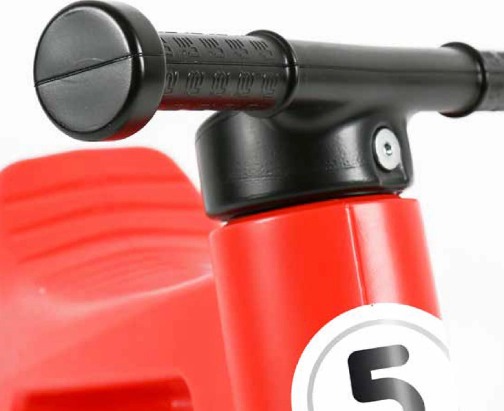 Obmedzený rozsah otáčania vidlice zabraňuje pretočeniu riadidiel a rozšírené rukoväte chránia detské ruky.
