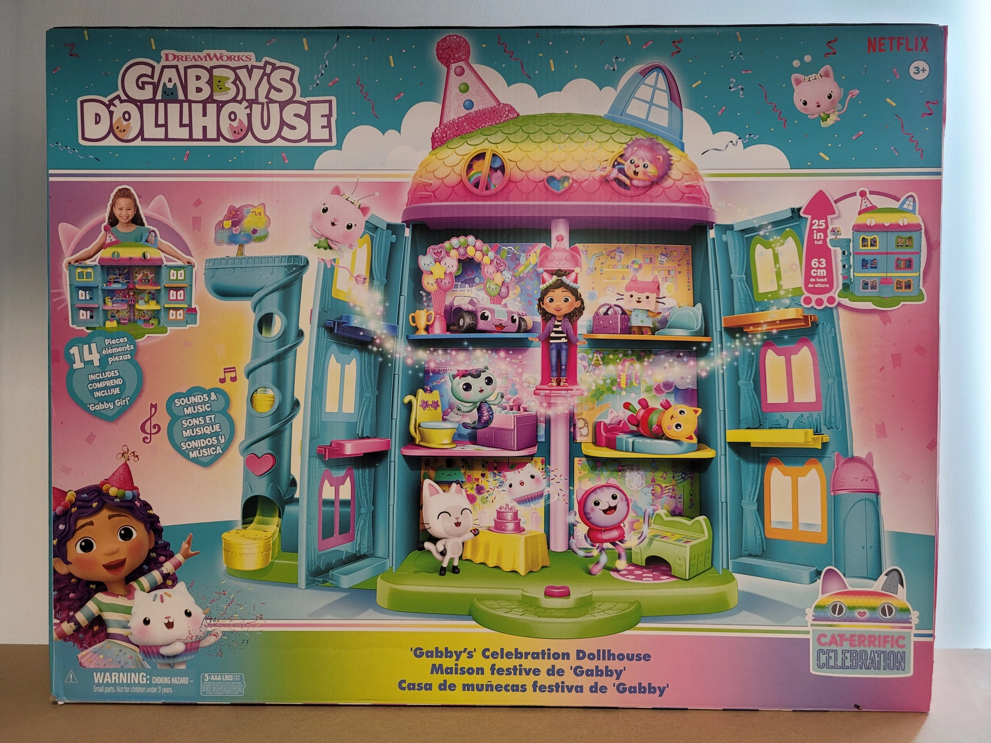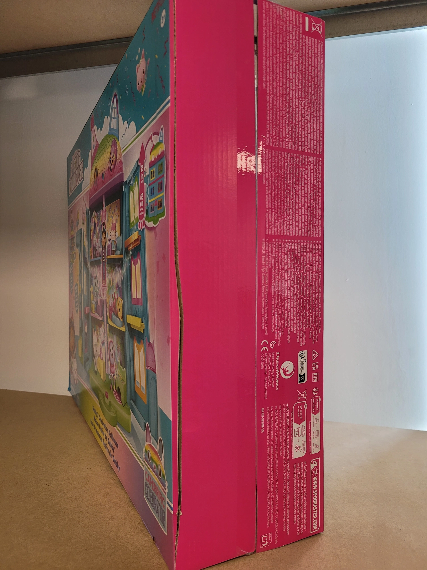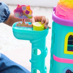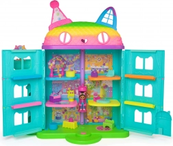 Veľký dúhový domček z obľúbeného seriálu Gabin mačací domček prináša deťom veľa interaktívnej zábavy. Otvárací domček ukrýva 6 detailne spracovaných izieb a strešnú hernú zónu. Vďaka výťahu Cat‑A‑Vator môžu deti jednoducho presúvať postavičky medzi poschodiami, stláčaním tlačidiel spúšťať 6 zvukov a melódií a objavovať tajné skrýše s prekvapením.