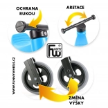 Obmedzený rozsah otáčania vidlice zabraňuje pretočeniu riadidiel, rozšírené konce rukovätí chránia detské ruky.