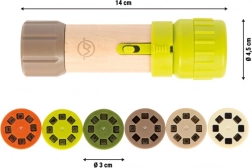 Táto moderná objaviteľská hračka kombinuje praktickú baterku s obrazovým projektorom, ktorý premieta vzdelávacie motívy na steny, strop alebo podlahu. Deti sa hravou formou učia o biológii, botanike a astronómii, zatiaľ čo si trénujú jemnú motoriku výmenou obrázkových diskov.