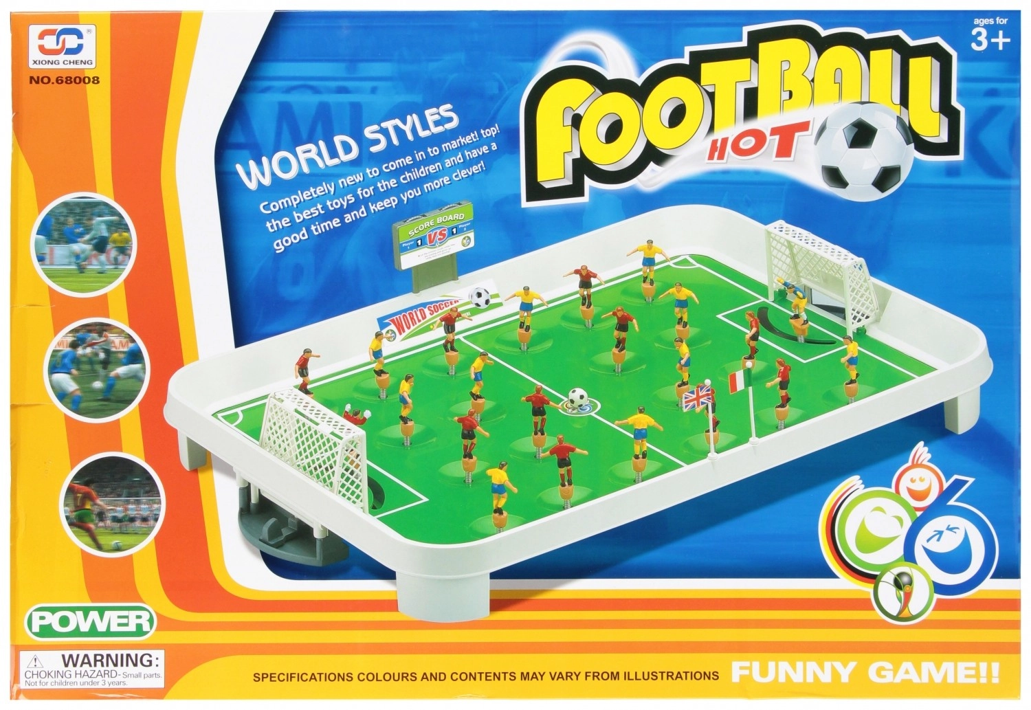 Zábavná stolová hra pre malých fanúšikov futbalu, ktorá vďaka pohyblivým figúrkam a jednoduchému ovládaniu realisticky simuluje zápas. Podporuje koordináciu, obratnosť a férovú súťaž. Farebné prvky motivujú deti k hre doma aj v skupine. Súčasťou je hracie ihrisko, 22 figúrok hráčov, loptička a doplnky. Vhodné od 3 rokov.