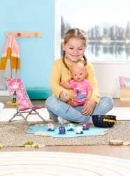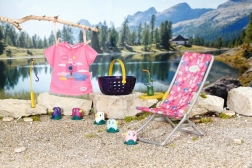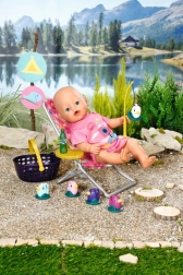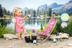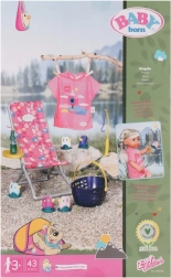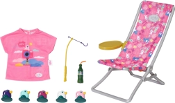 BABY born Víkendová súprava na rybárčenie obsahuje oblečenie, ležadlo so stolíkom, fľašu s limonádou, košík, 5 kačeniek a rybársky prút.