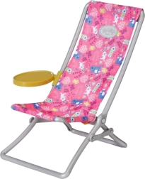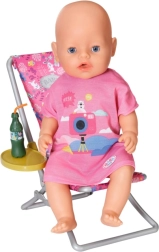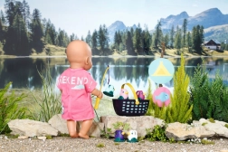 „V mori je rýb oveľa viac…“ Ale BABY born radšej chytá roztomilé káčatká. Zatiaľ čo pohodlne sedí v ružovom ležadle s farebným vzorom, snaží sa na háčik udice chytiť jednu z piatich kačeniek. Sem-tam si usrkne limonádu, ktorú má položenú na žltom stolíku pri ležadle. Keď vyloví všetky kačenky a má ich uložené v modrom koši, vráti ich späť do rybníka a zábavná hra sa môže začať znova. Na túto hru na rybárčenie si BABY born obliekla ležérne dlhé ružové tričko s roztomilou potlačou.