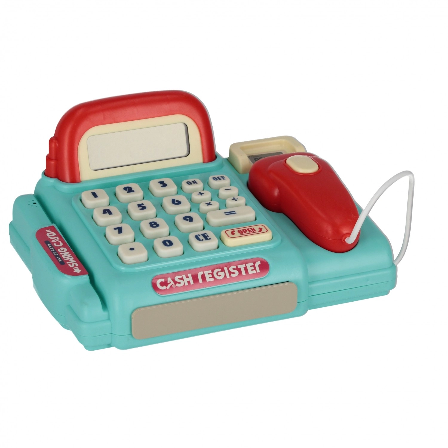 - Realistická hra na obchod: skener, čítačka a tlačidlá napodobňujú skutočnú pokladňu.