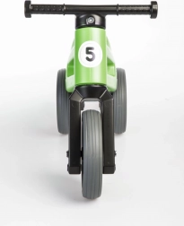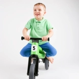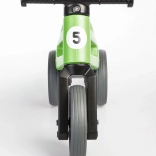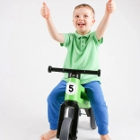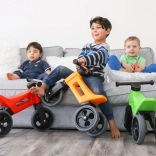 Bezpečnosť zaisťuje obmedzený rozsah otáčania vidlice, rozšírené koncovky gripov chránia ruky a široké kolesá dodávajú stabilitu. Ľahká konštrukcia (iba 1,9 kg) uľahčí prenášanie a manipuláciu. Odrážadlo pomáha rozvíjať motoriku, rovnováhu aj koordináciu a motivuje deti k dlhším a zábavnejším prechádzkam.