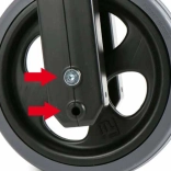 Obmedzený rozsah otáčania vidlice a rozšírené koncovky rukovätí chránia detské ruky a bránia pretočeniu riadidiel.