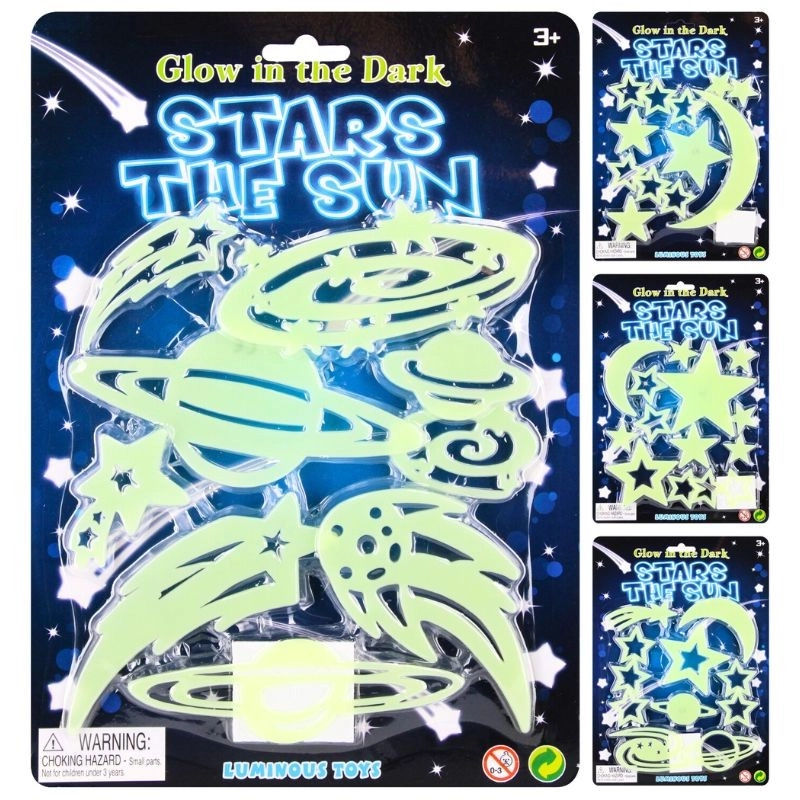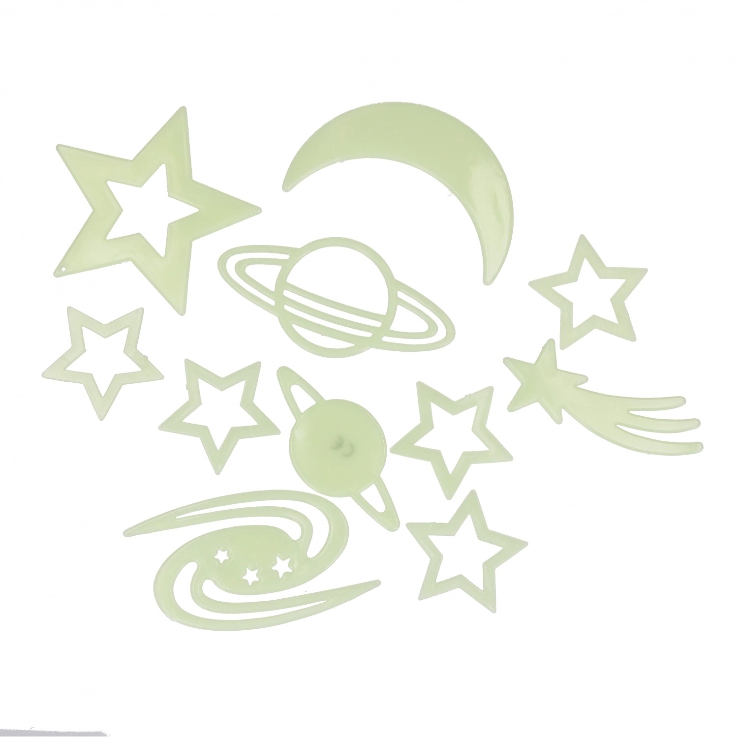 Premeňte detskú izbu na malý kozmos! Tieto fluorescenčné vesmírne dekorácie krásne svietia v tme, ľahko sa lepia na stenu aj strop a reagujú aj na UV svetlo. Mix motívov – planéty, hviezdy a ďalšie tvary. Vhodné pre deti od 3 rokov. Cena za kus.