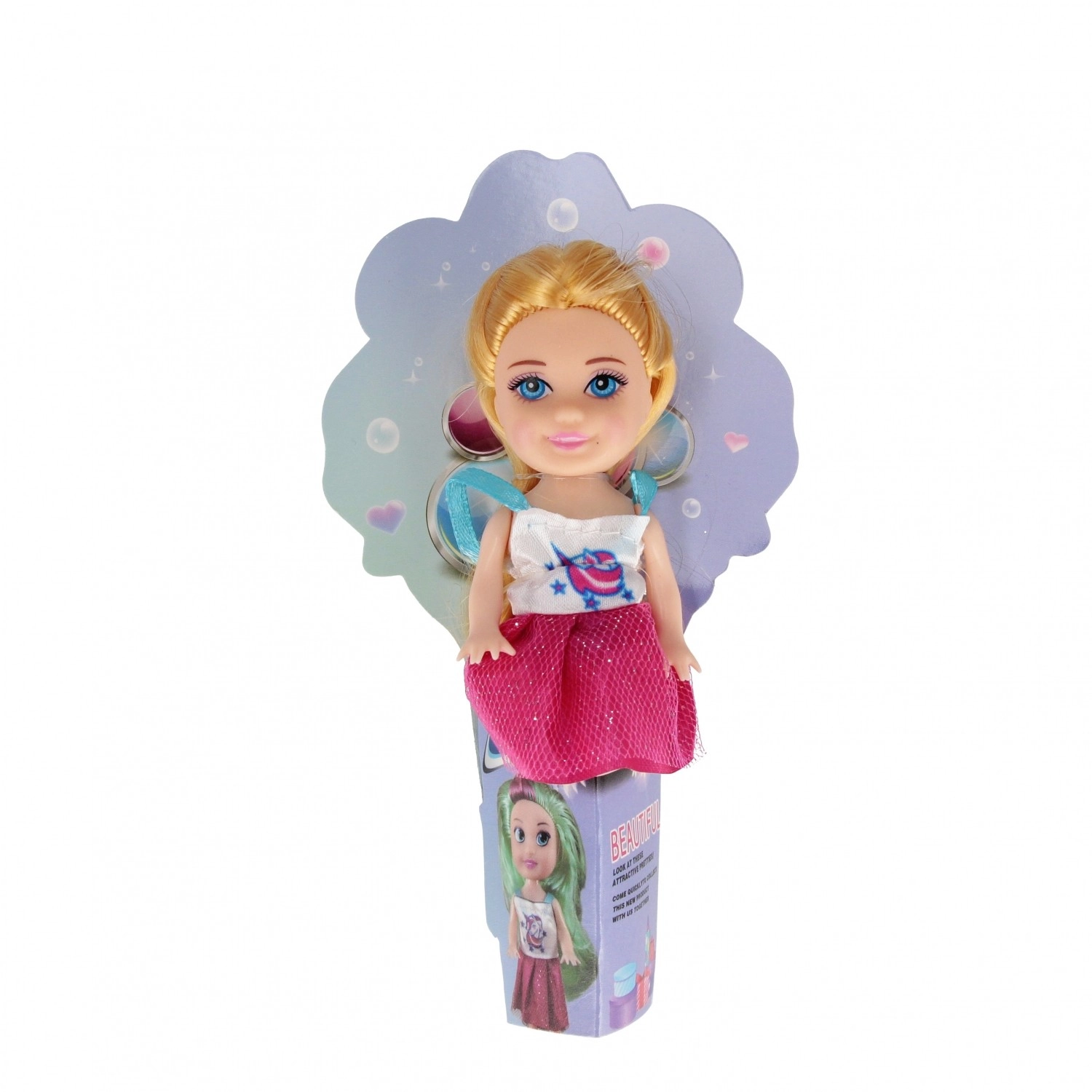 Roztomilá mini bábika vysoká 10 cm na každodenné hranie aj zbieranie. Každá bábika má iný farebný outfit, kompaktný rozmer do malej rúčky a rozvíja fantáziu a kreativitu. Ideálna na doma, na cesty aj do škôlky. Mix štyroch variantov – odosielame náhodne. Vhodné pre deti od 3 rokov. Cena za 1 kus.