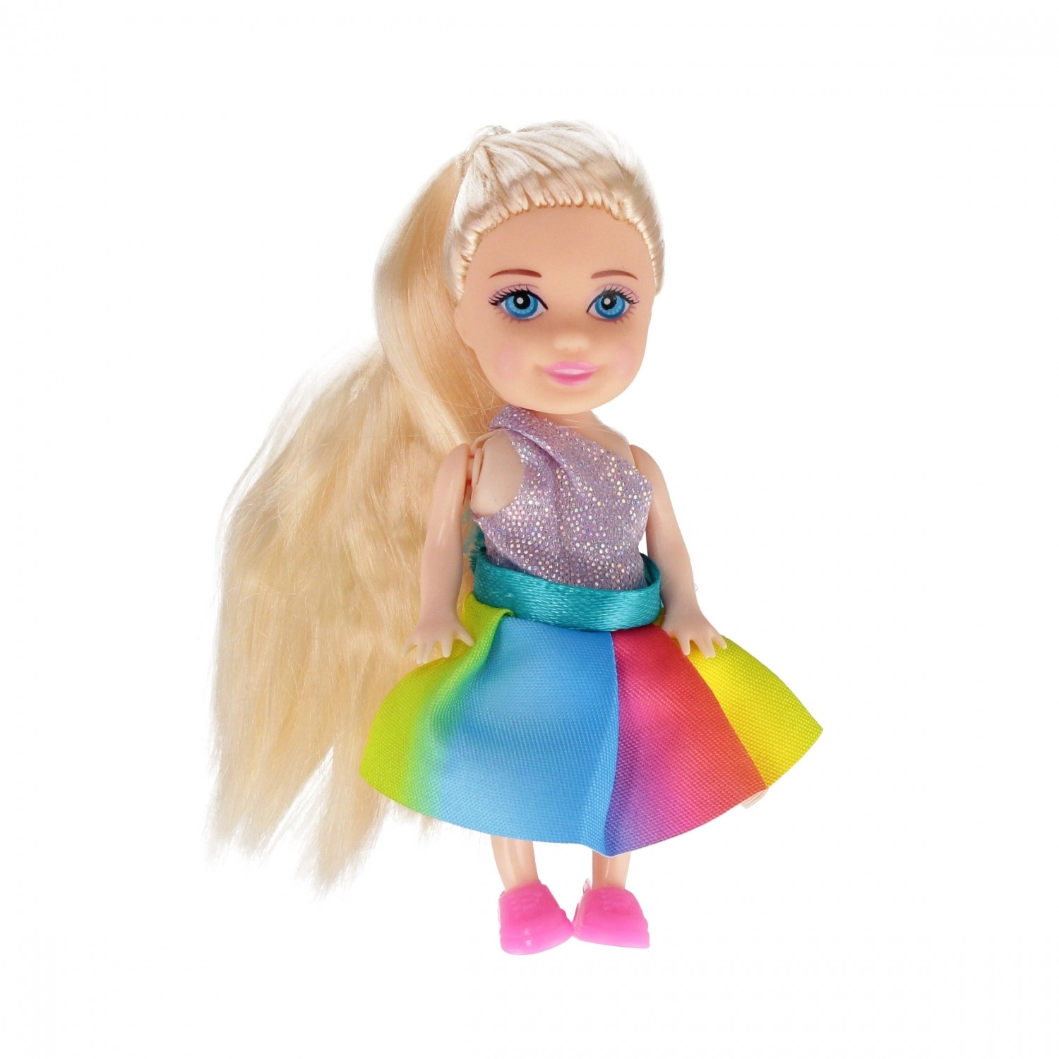 Mini bábika Rainbow poteší malých milovníkov módy a imaginatívnej hry. Vďaka výške 10 cm sa ľahko zmestí do batôžka aj vrecka a je tak perfektným spoločníkom na cesty. Každá bábika má inak zladené šatočky, topánky a doplnky, takže každé rozbalenie je malé prekvapenie.