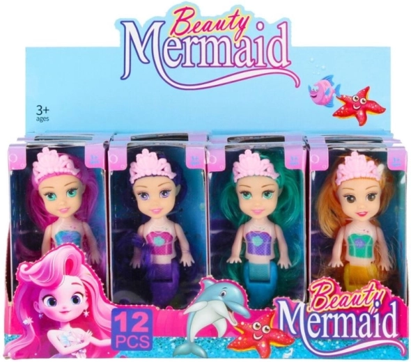Roztomilá bábika morská panna vysoká 12 cm prenesie deti do magického podmorského sveta plného fantázie. Každá bábika má farebný chvost a štýlové doplnky, ktoré podporujú kreatívnu hru a predstavivosť. Ideálny darček pre milovníkov mora a rozprávok. K dispozícii v štyroch variantoch, zasielané náhodne. Vhodné pre deti od 3 rokov. Cena za kus.