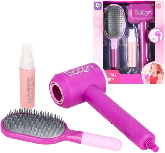 Všetko, čo deti potrebujú: fén, kefa, hrebeň, sprej a ďalšie doplnky v atraktívnom ružovom prevedení – ideálne na pretend play.