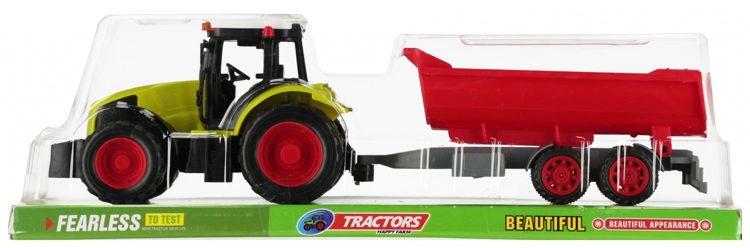 Traktor má voľne otočné kolesá, realistickú kabínu a príves s funkciou sklápan ia pre jednoduché nakladanie a vykladanie. Vďaka kompaktným rozmerom je perfektný do detskej izby aj na cesty.