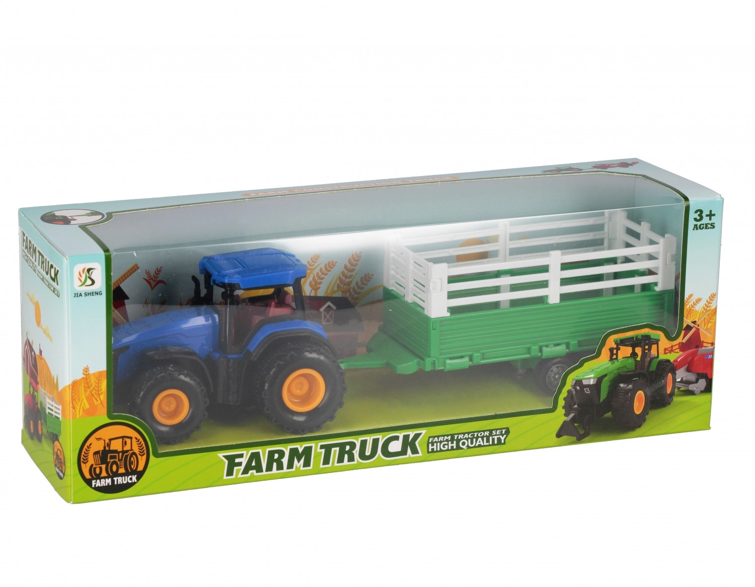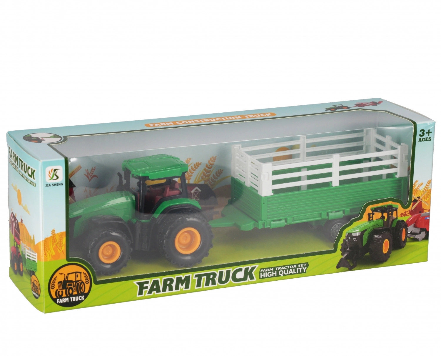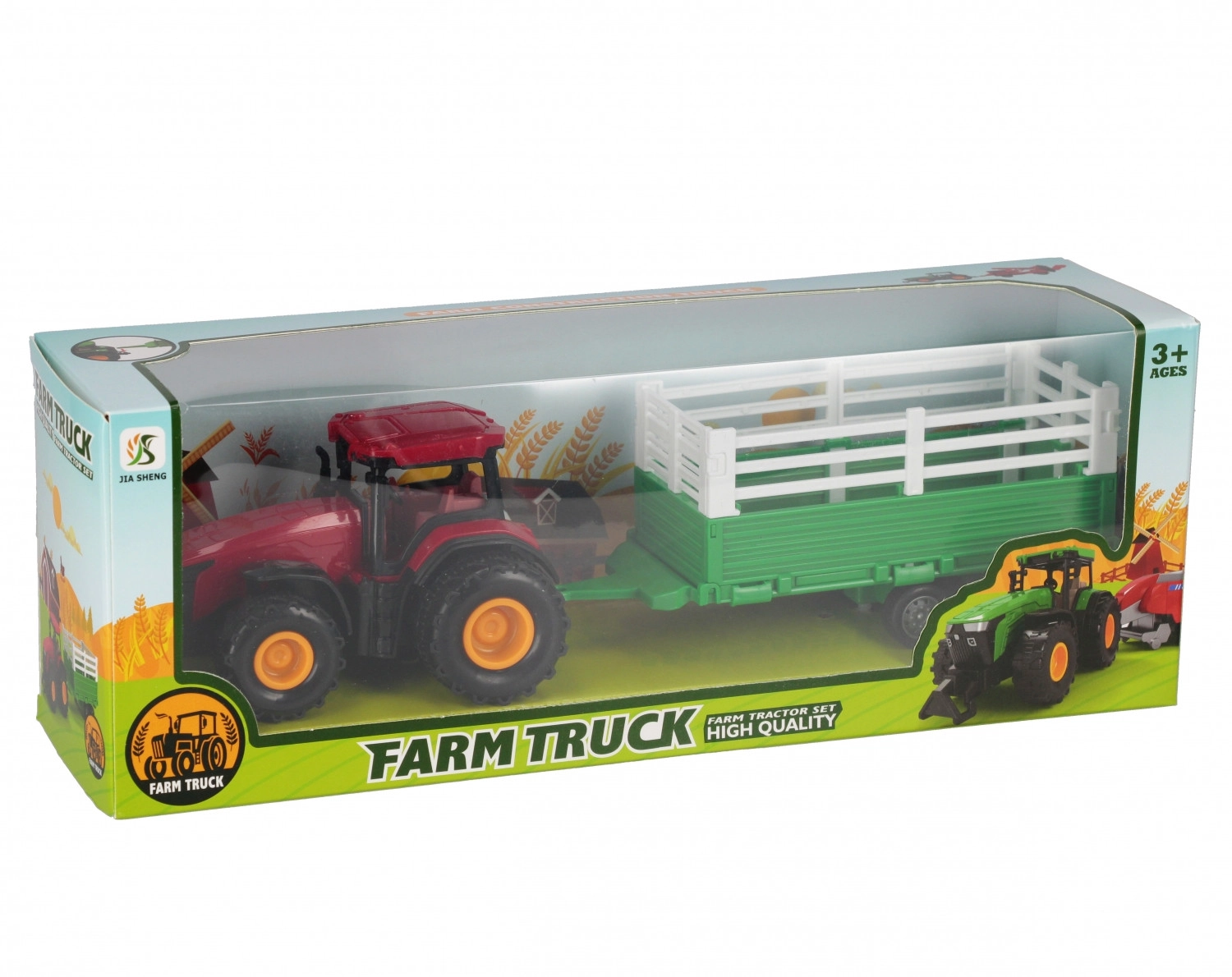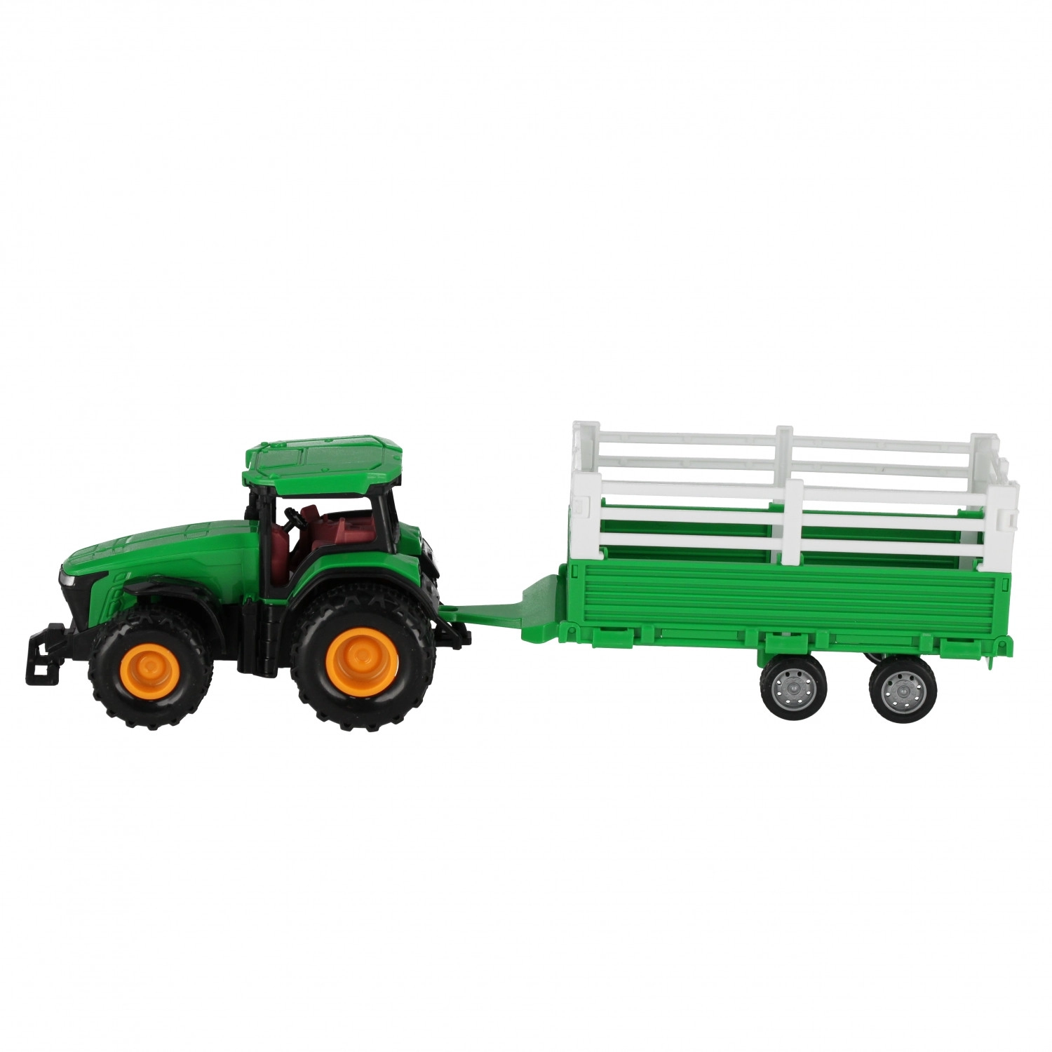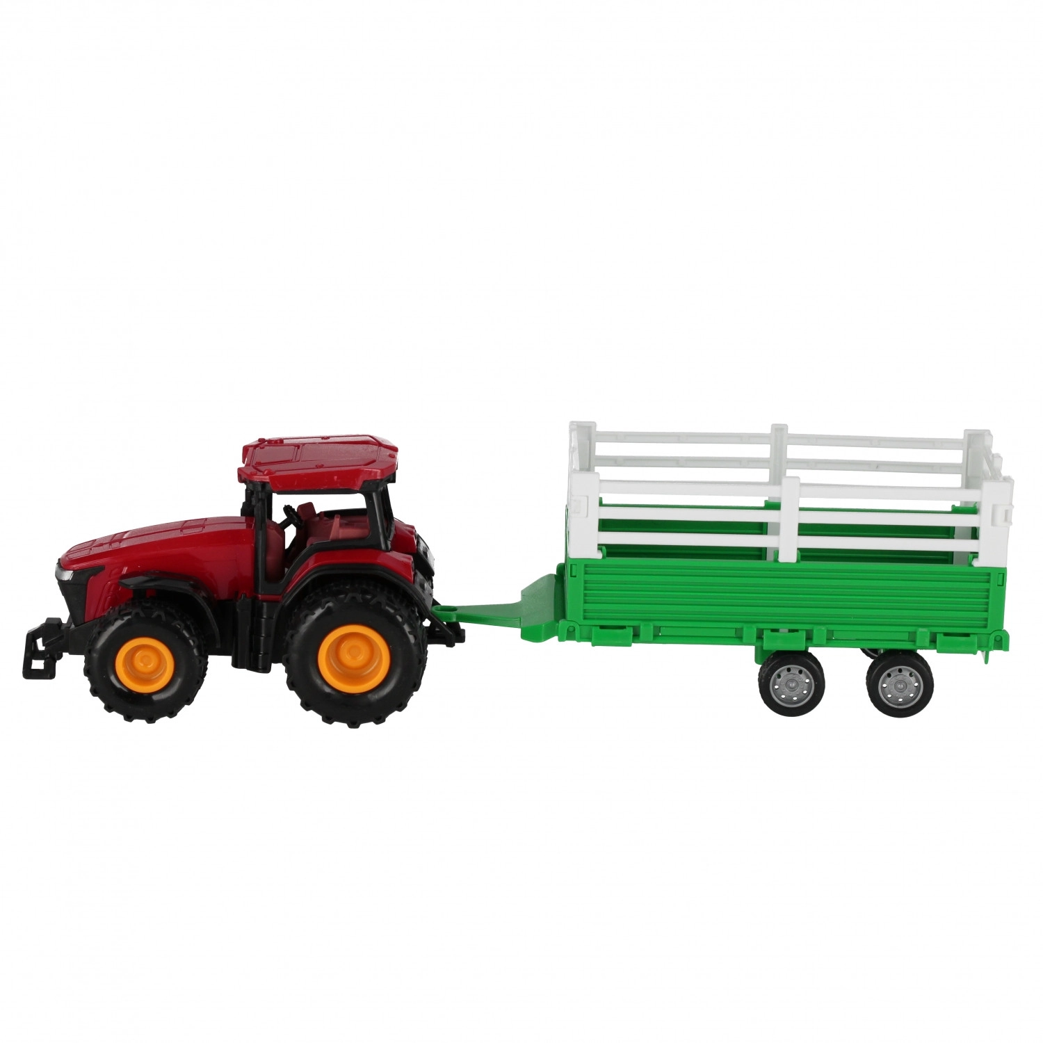 Zábavná poľnohospodárska súprava pre malých vodičov – traktor s odnímateľným prívesom a funkciou pull-back. Stačí potiahnuť dozadu a traktor sa rozbehne sám. Realistické detaily, valivé kolesá a príves na prevoz nákladu. Veľkosť cca 33 × 12 × 9 cm, vhodné pre deti od 3 rokov.