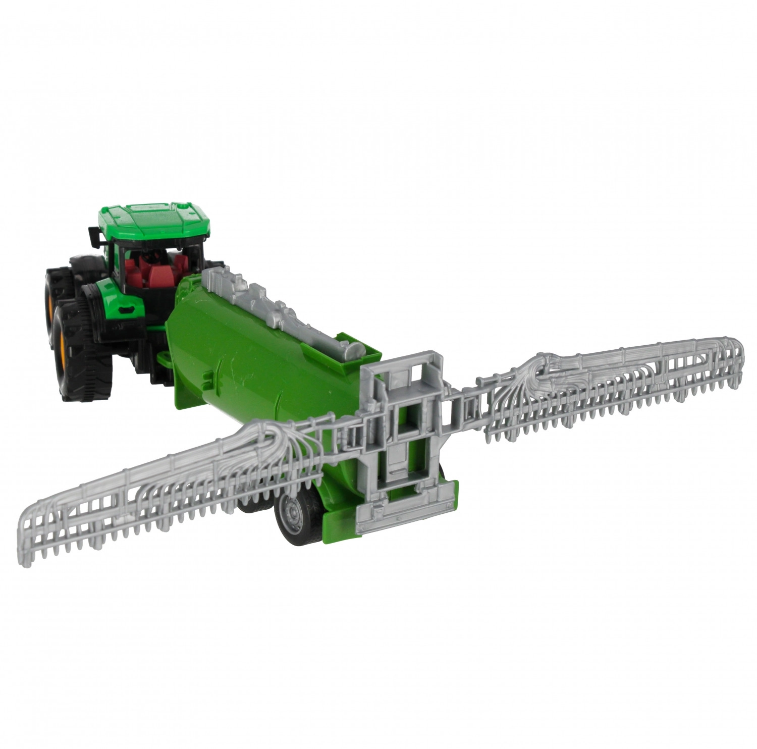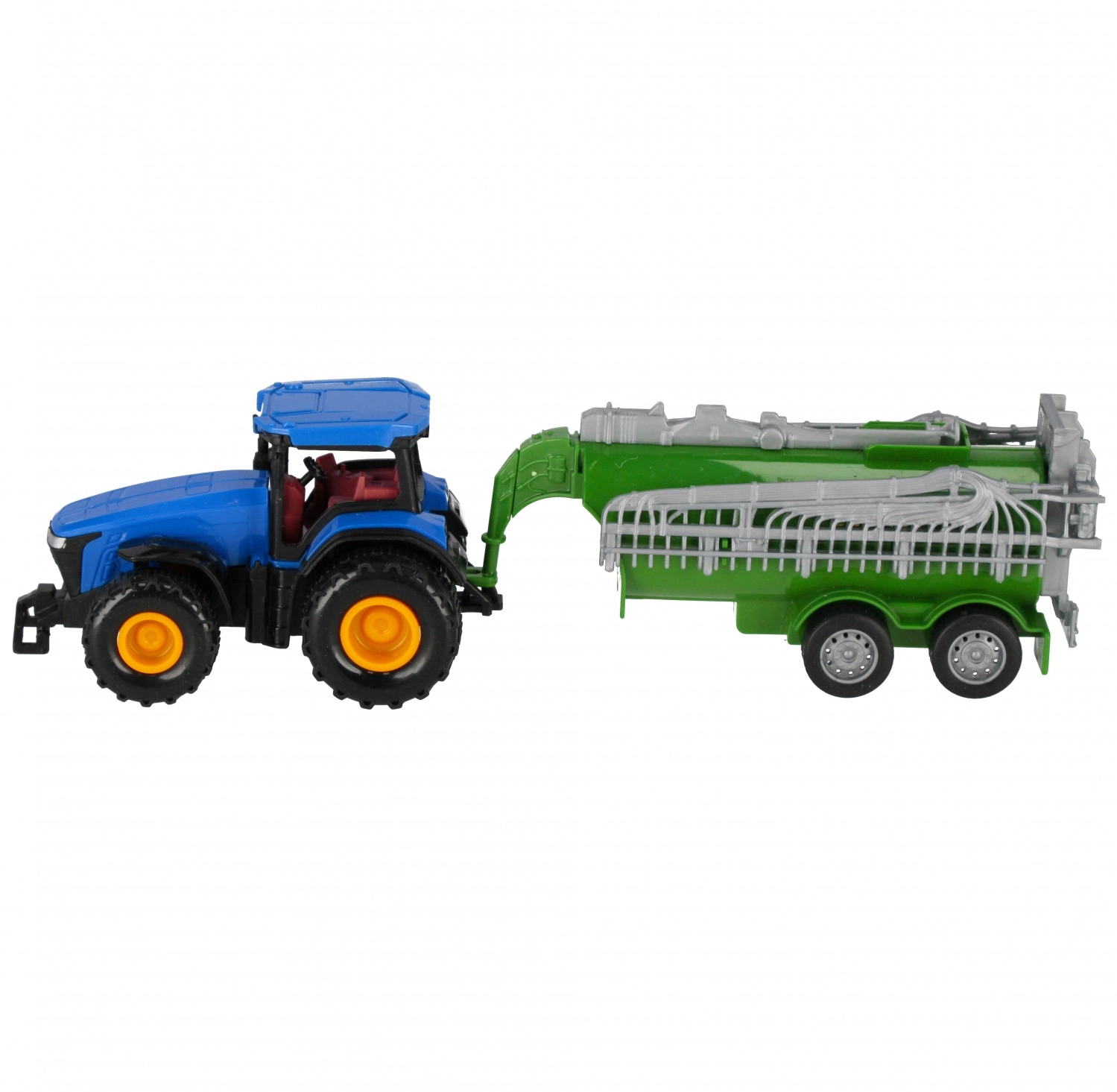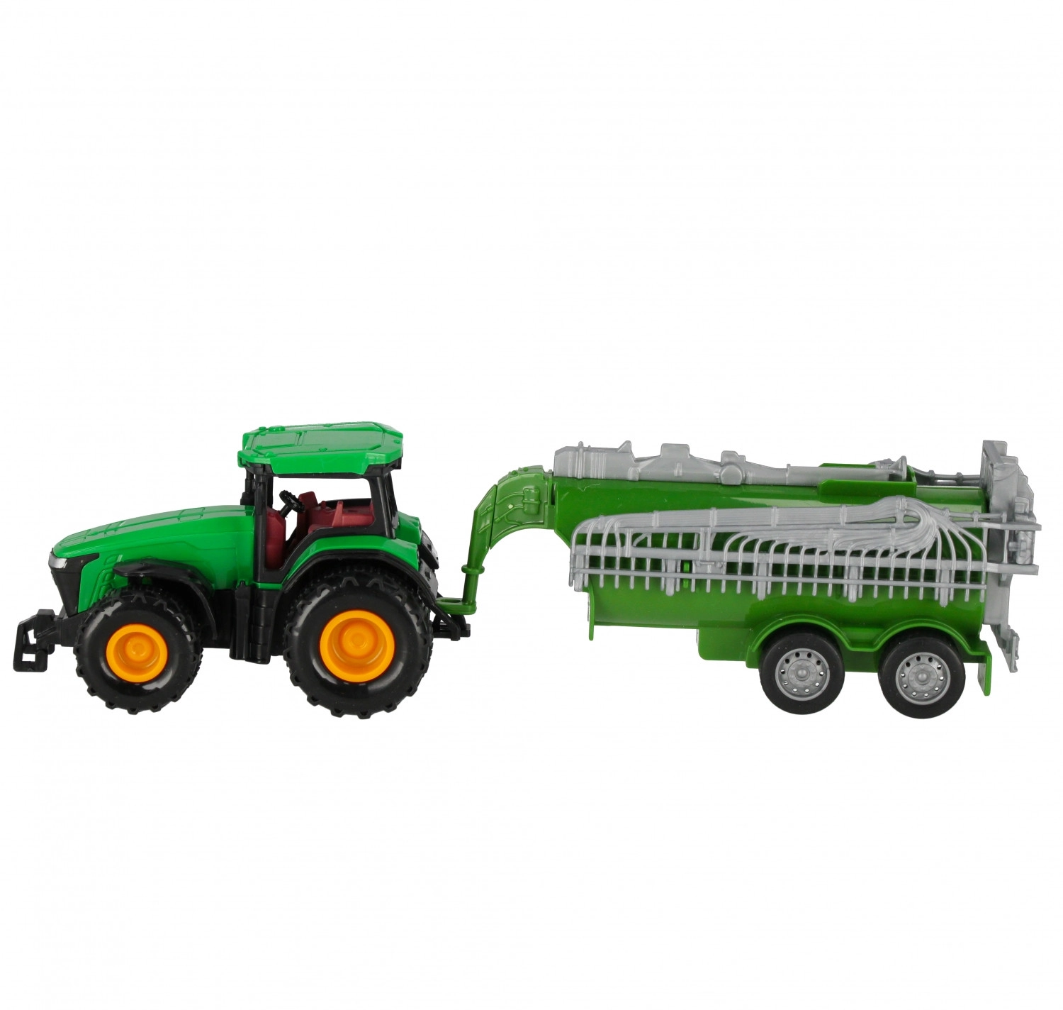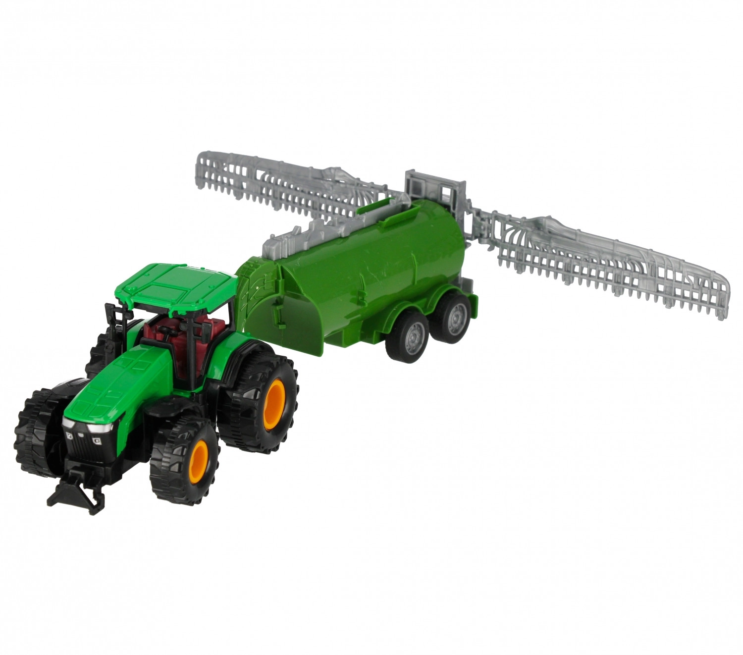 Tento detailne spracovaný poľnohospodársky stroj s cisternovým prívesom prináša deťom autentickú farmársku zábavu. Vďaka funkcii pull-back stačí potiahnuť dozadu a pustiť – traktor vyrazí vpred a podporí dynamickú hru. Pohyblivé časti, ako sú výklopné či sklopné prvky prívesu a realistické detaily kabíny, pozývajú k objavovaniu a rozvíjajú motoriku aj fantáziu.
