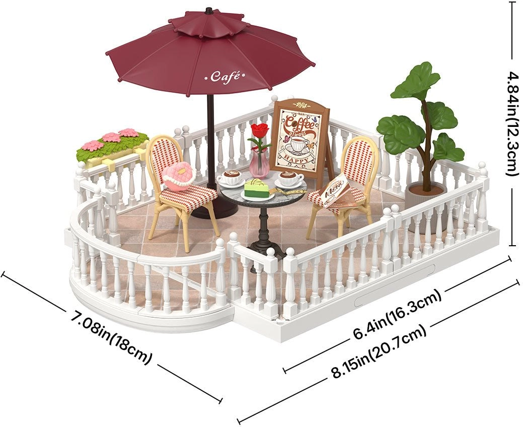 Vytvorte si svoj vysnívaný miniatúrny kút s rozširujúcou sadou Rolife Super Creator. Táto detailne spracovaná terasa/kaviareň pridá vášmu domčeku útulný balkónik s posedením, dekoráciami a doplnkami pre realistickú scénu. Jednoduché pripevnenie, štýlový dizajn kaviarne a bohaté príslušenstvo premenia každý miniatúrny priestor na lákavé miesto na oddych.