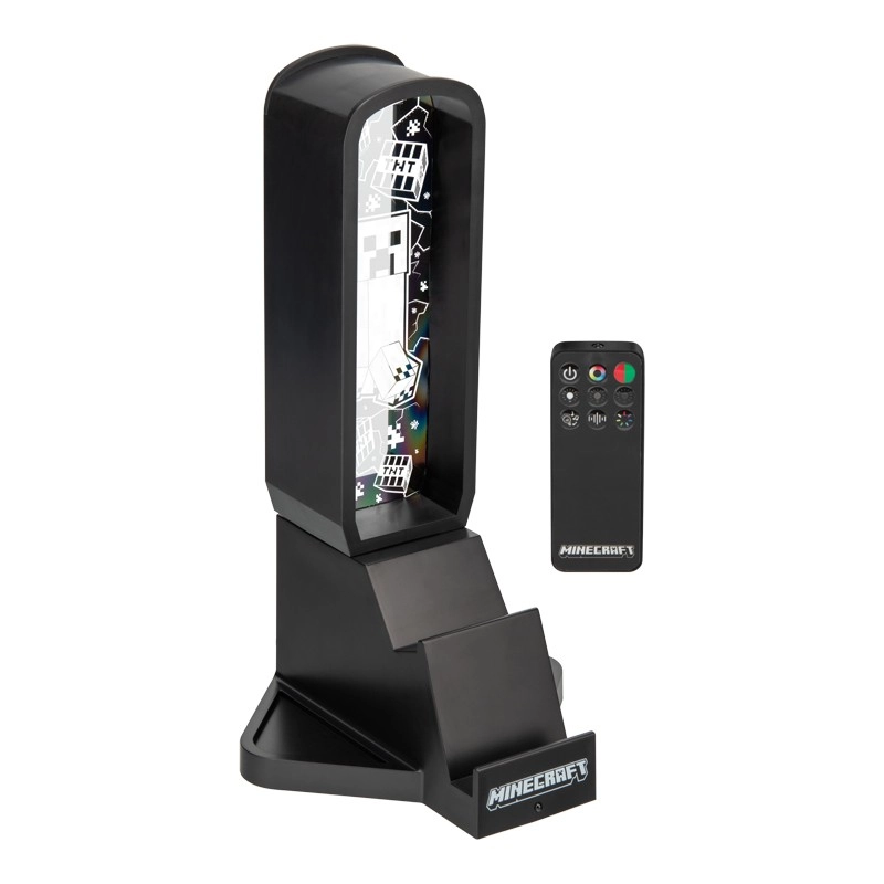 Štýlový držiak na slúchadlá inšpirovaný svetom Minecraft zaujme výškou 30 cm, viacfarebnými svetelnými režimami, praktickým držiakom na telefón a dvojicou USB‑C portov na nabíjanie príslušenstva. Ovládanie je pohodlné vďaka diaľkovému ovládaču a napájaniu cez USB kábel, ktorý je súčasťou balenia.